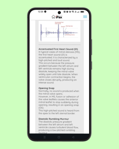 On October 29, the case presented featured heart sounds at the apex characterized by accentuated S1, an opening snap, and a diastolic rumbling murmur. Listen to the audio file and compare it with iPax, then answer the quiz.