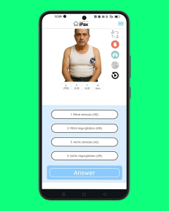 10月28日は、心雑音の最強点が心尖部にあり、左腋窩に放散する症例問題です。iPaxで心尖部と左腋窩を聴診してクイズに答えてください。