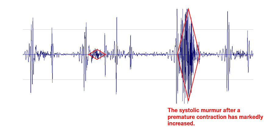 On September 28, we focused on differentiating ejection systolic murmurs and holosystolic murmurs.They can be distinguished by the change in murmur intensity after a premature contraction.