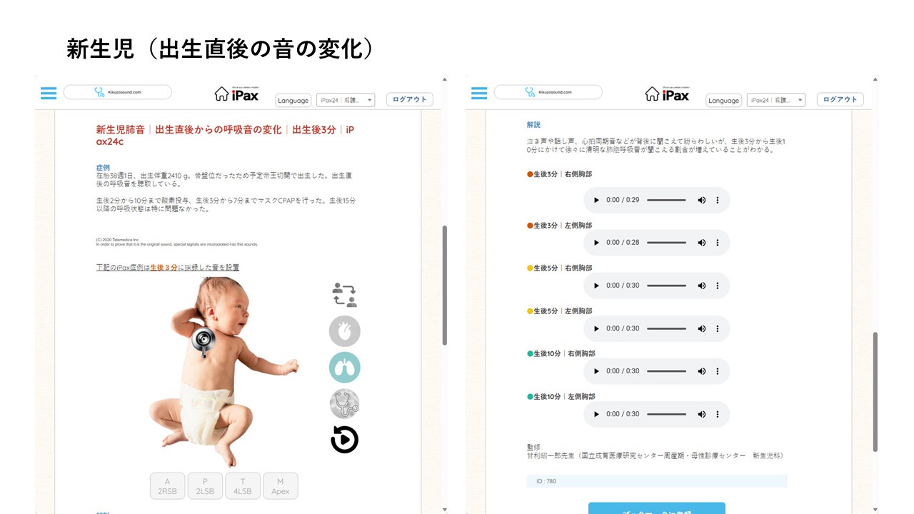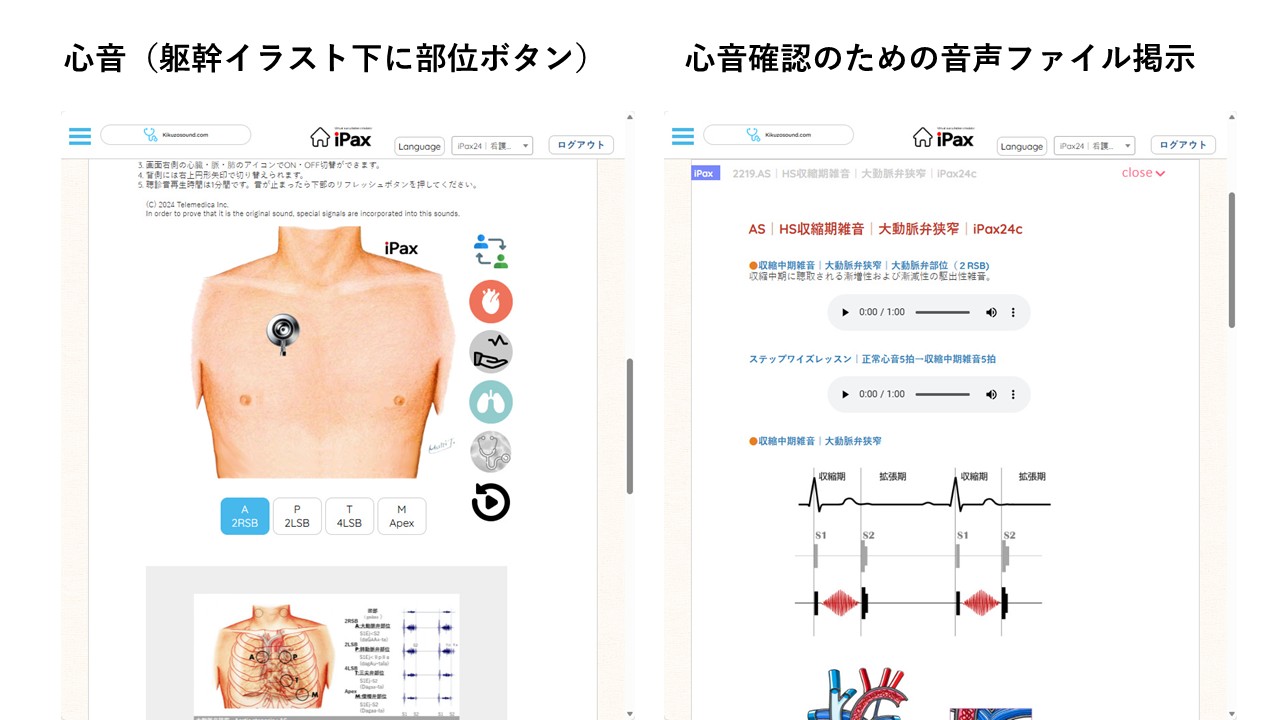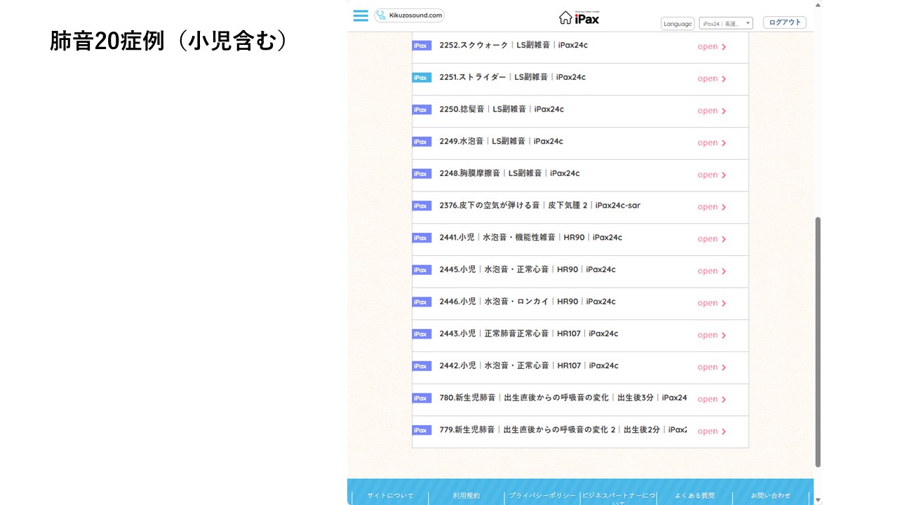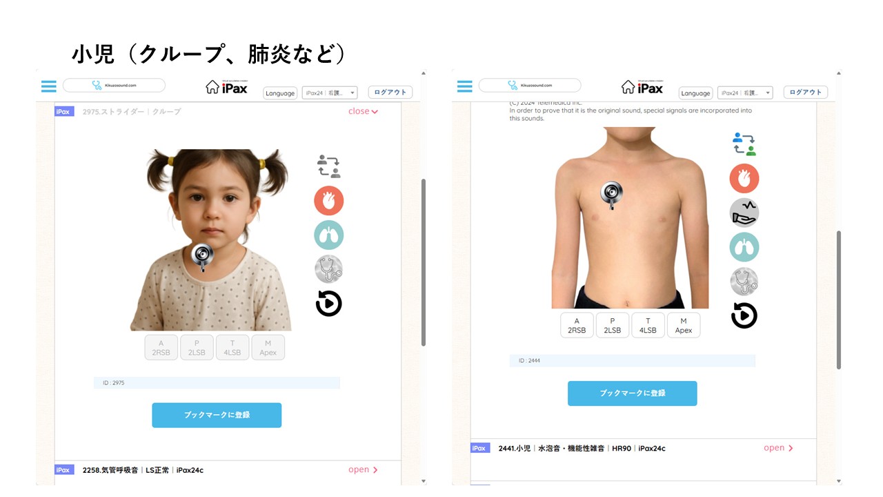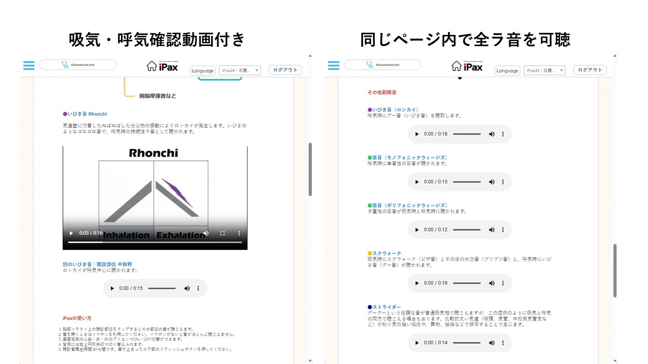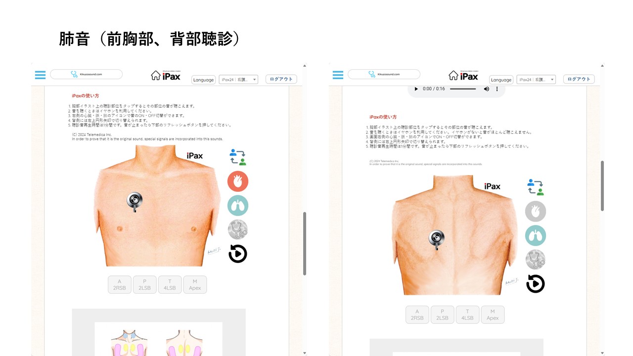 心音肺音の聴診だけでなく、スリルや皮下気腫のラトリングも学習することができるiPax